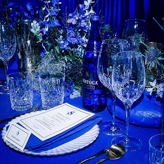 Saratoga® Spring Water enriches life’s grand and subtle moments with its smooth, refreshing taste and signature cobalt blue bottle. Available in still and sparkling, we believe distinction is in the details.