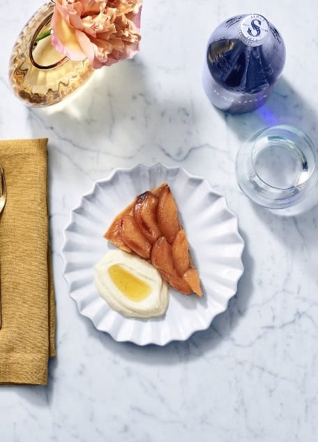 World-renowned chef Buddha Lo felt inspired by fellow chefs to curate his own Apple Tarte Tatin recipe (originally created by the namesake French Tatin sisters). As a popular dish on restaurant menus, this dessert's irresistible warmth and decadence combines caramelized, fluffy, and flakey textures that synchronize with Saratoga® still water.