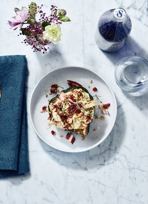Maple-Roasted Acorn Squash with Farro, Fennel, and Treviso Radicchio Salad