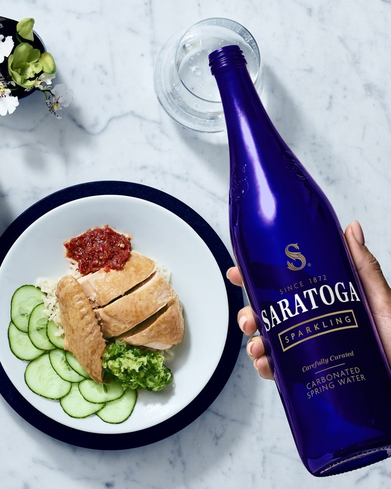 This recipe from world-renowned chef Buddha Lo was inspired by his dad and the time they spent together at his restaurant. Hainan chicken and rice make for a deliciously impressive dinner. Don't be intimidated by the components; they come together easily, and the savory notes in the recipe pair perfectly with Saratoga® sparkling water.