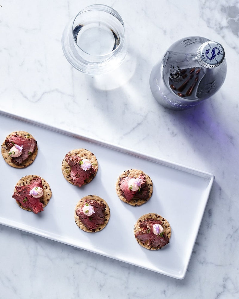 A delicious party appetizer that showcases the richness of steak and the boldness of the chipotle sauce. This recipe pairs perfectly with Saratoga® Still Water as it will balance out the bold flavors on your palate and allow the flavors of the recipe to sing.