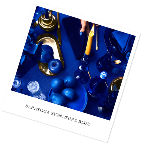 It is cobalt’s dynamic vivacity and perception of opulence that has transitioned Saratoga Spring Water and its signature cobalt blue bottle into the sphere of luxury in design, elevating the every-day. Saratoga Signature Blue is a declaration of the life one chooses to lead.
