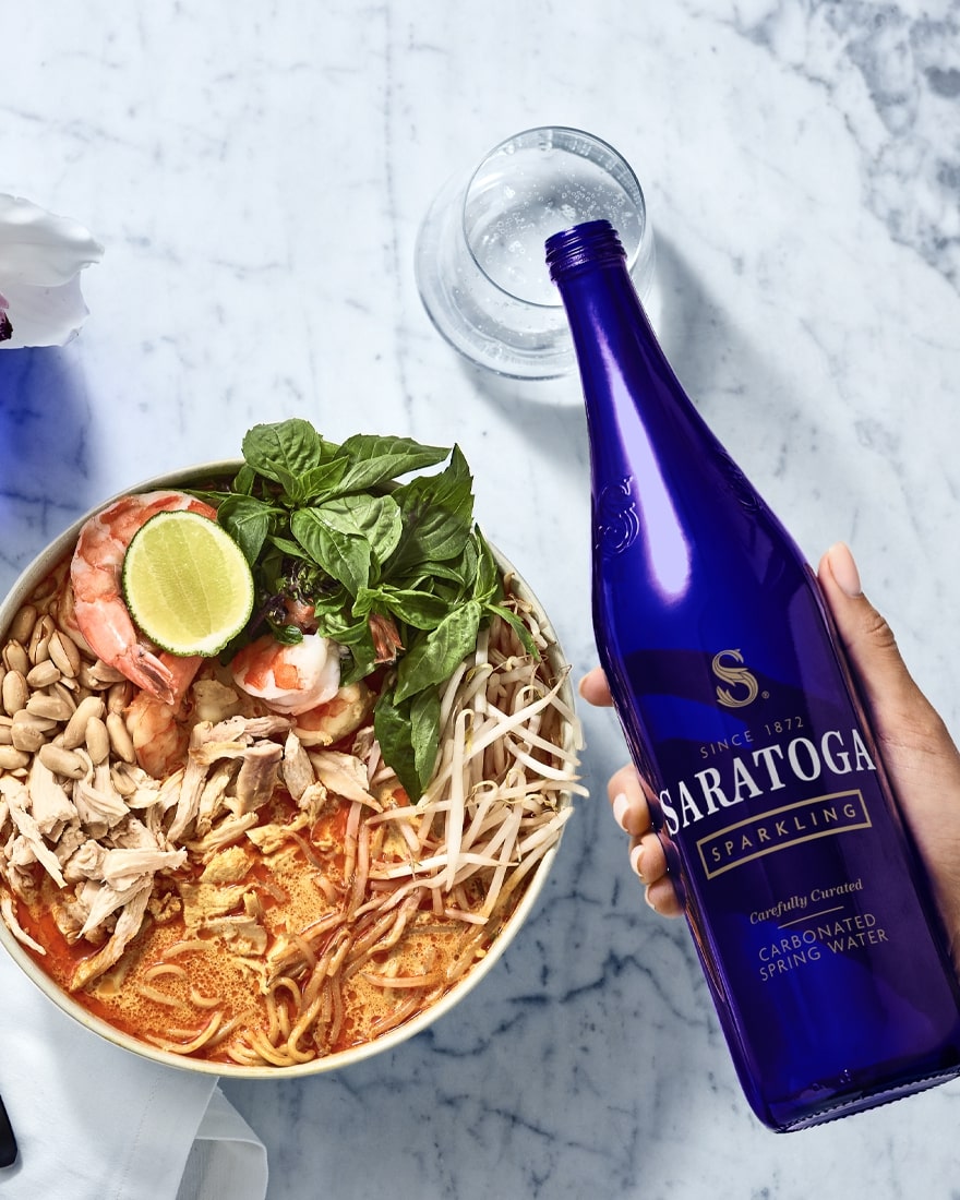 Saratoga® sparkling water’s flavor profile is clean and slightly sweet, with negligible amounts of sodium, magnesium, and calcium. Its mouthfeel is noted by uplifting bubbles and a smooth texture. Our sparkling water pairs best with foods that have bold flavors and strong aromas. Saratoga® is sourced and bottled in the United States.